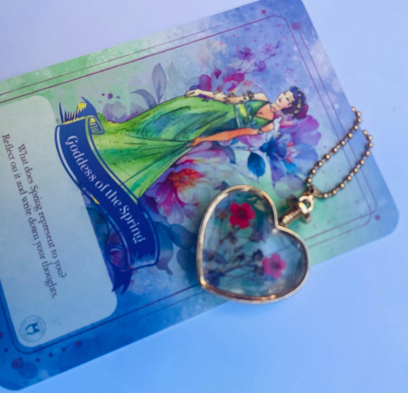 Forget me not Persephone necklace/Goddess of Spring necklace/heart pendant with dried flowers/Forget me not pendant.This...