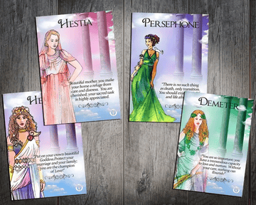 In addition to our jewelry collection, we offer a wide range of healing crystals that are aligned with the energies of specific goddesses and designed to aid in everything from protection and self-love to courage and wisdom. Our meditation cards are a favorite among our customers, providing daily affirmations and guidance inspired by the stories and symbols of Greek mythology.