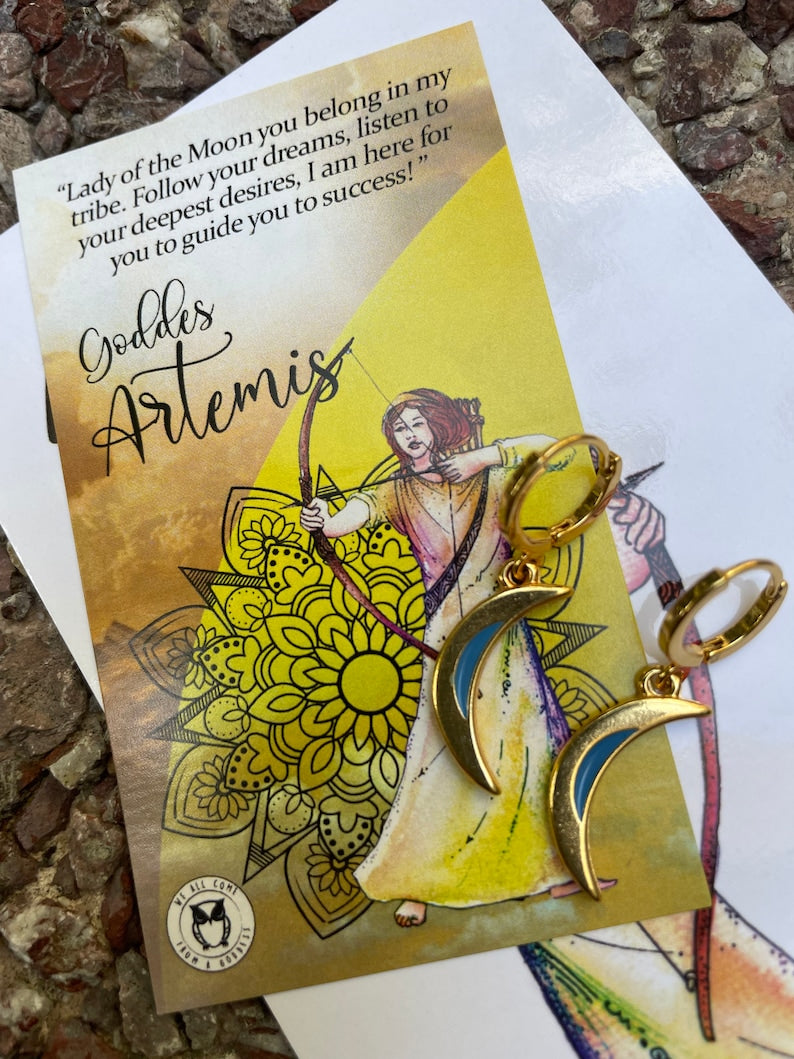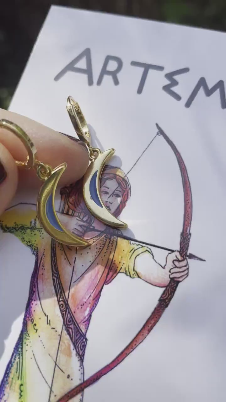 Artemis moon earrings/gold plated moon earrings/Goddess Artemis earrings/Goddess Artemis symbol earrings