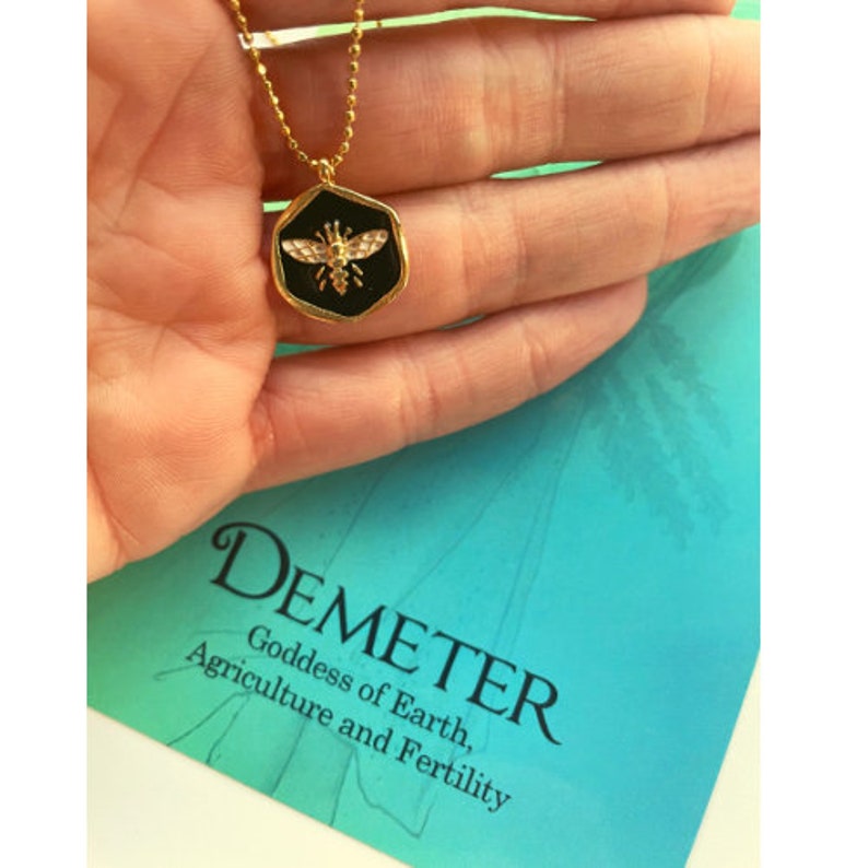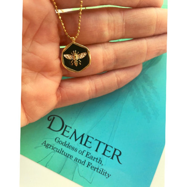 This necklace is inspired by the Greek Goddess of Earth and Fertility.. It's made of high quality gold plated bee charm.